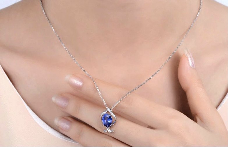 2.20 carat Natural Tanzanite. 0.07 carat Diamond. 18K Gold Necklace. Luxury packaging included. We can make a free customized 3D drawing based on this design and your wishes. Please contact us below. Also if you require advice from our experts.
